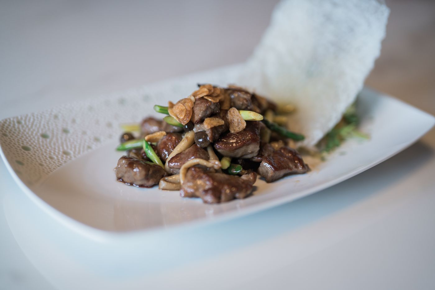 Sauteed Beef Cubes with Garlic and Mixed Mushrooms